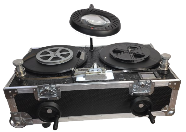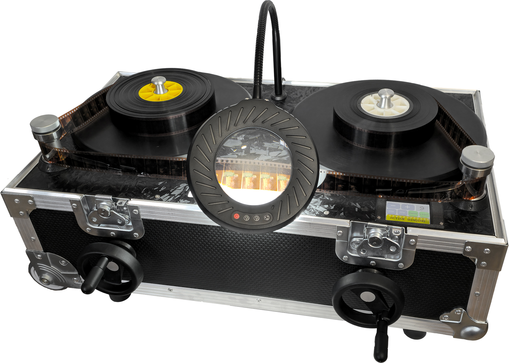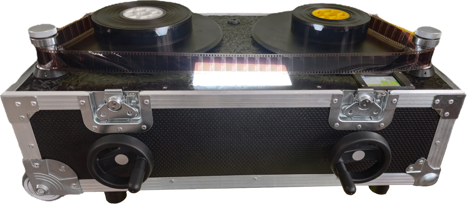 The BIAN is a simple and modular tool. It looks like a weeled suitcase and inside it hides all the parts and tools necessary to proceed with the tactile and visual inspection, both of the physical condition and the contents of the films under evaluation.