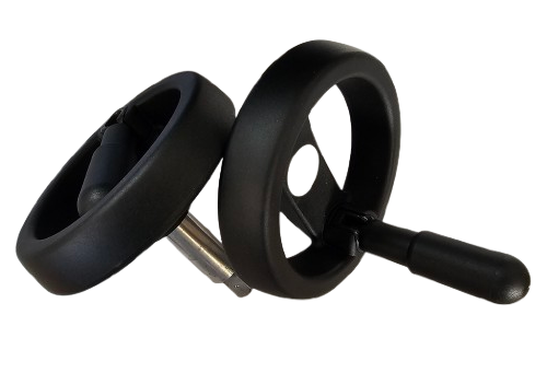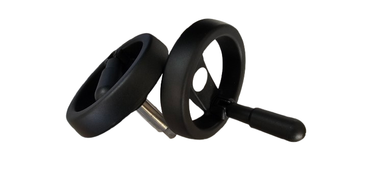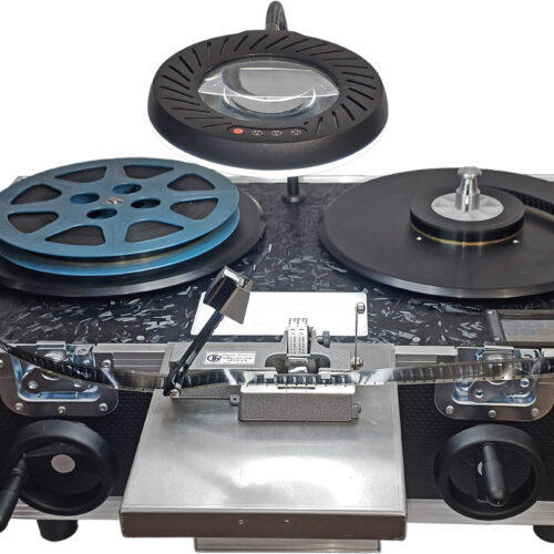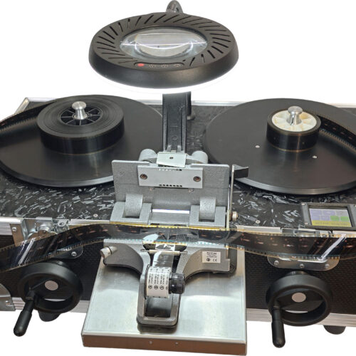 The basic version of the BIAN features two removable spoked handwheels with a foldable handle for maximum simplification of purely manual movement control, in both directions and lateral movement, of the film whether on a core or reel or without either.
